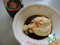 Для заправки очистить и натереть на мелкую тёрку чеснок, добавить майонез и соевый соус Kikkoman, перемешать. |