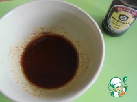 В глубокой чаше смешать соевый соус, ананасовый сок, оливковое масло и мед. Добавить паприку, хорошо перемешать. |