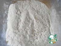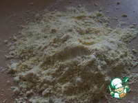 Сухие ингредиенты выложить на сухую чистую поверхность, выложить сливочное масло нарезанное кубиками и перетереть в крошку при помощи рук. |