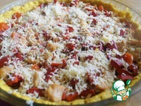 Описание: Предлагаю попробовать вкусный и сытный пирог, который отлично подойдет в качестве блюда к ужину. Песочная основа с добавление карри отлично сочетается с сочной начинкой из маринованного куриного филе и болгарского перца.