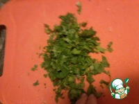 Пока курочка печется займемся соусом. Огурцы мелко порезать, посечь петрушку. |