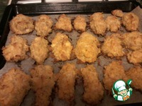 Каждый из кусочков курицы достаем из маринада, обмокаем в муке, затем в яйце, потом в нашей панировке, и выкладываем на противень. Выпекаем 20 минут про 200 градусах. |