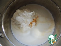 Готовим соус. Смешать в кастрюле молоко, сметану и соевый соус Kikkoman. |