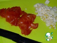 Лук репчатый, чеснок и помидор порезать кубиком |