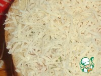 Сверху посыпаем тертым сыром (мелкая терка). Жюльен ставим в разогретую духовку и запекаем 20-30 минут при температуре 180 градусов. Подаем жюльен к столу в горячем виде. Приятного аппетита! |