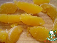 Aпельсин очистить от плёнки и нарезать кубиками. |
