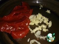В миске смешать томатную пасту и пропущенный через пресс чеснок, мед. |