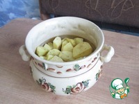 Режем курочку на кусочки, посыпаем специями, добавляем чеснок, майонез по вкусу. Я добавляю пару ложек на пол курицы. Не люблю много. Оставляем мариноваться. В это время чистим картошку. |