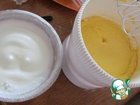 Взбиваем масло с сахаром, добавляем по одному желтки, сметану, муку и разрыхлитель, постоянно взбивая массу. |