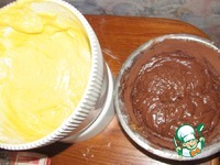 Разделяем на 2 части тесто, в одну добавляем какао. |