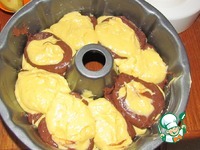 В форму для кекса выливаем по ложке светлой и темной смеси. |