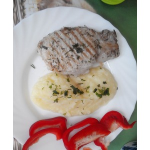 Подавать с гарниром из картофеля / пюре / риса и салатом из свежих овощей. |