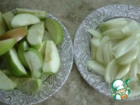 Яблоки вымыть, разрезать каждое на 8 частей, сердцевину вырезать. Лук нарезать дольками. |
