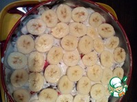 После чего на пряники выкладываем вишню. Поверх вишни ложим третий слой пряников и заканчиваем слоем бананов. |