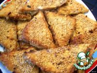 Кусочки обмакнуть в яйце и выложить на сковородку с маслом. Сверху присыпать кунжутом. |