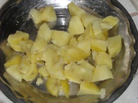 Картофель отварить в кожуре, остудить, очистить, порезать на крупные кусочки. |