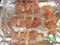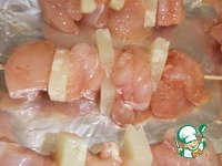 Описание: Очень вкусный нежный и сочный шашлычок... Ананас прекрасно оттеняет куриной мясо..
