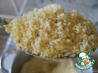 Заливаем кипятком, высота воды над кашей примерно с палец. И оставляем под крышкой минут на 10. Варить кускус не требуется. |