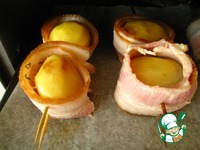 Картофелину оборачиваем грудинкой как на рисунке. |