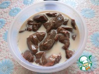 Печень очистить от пленок, нарезать кусочками примерно 3*3 см и залить молоком (лучше на ночь) |