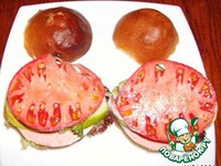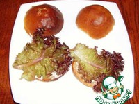 На кусок булки уложить: лист салата, |