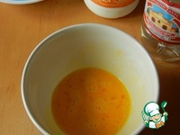Яйцо слегка взбиваем, соединяем с молоком и уксусом. Затем яичную смесь добавляем в мучную и хорошо перемешиваем. |