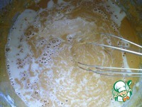 Понемногу влить горячее молоко. Если вы делаете из домашнего, как я, то молоко должно быть свежее. Хорошо перемешать. |
