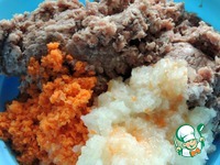 Перекручиваем на мясорубку рыбу, морковь и лук. |