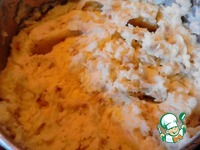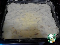 Выкладываем вторую половину пюре, разравниваем, посыпаем тертым сыром. |
