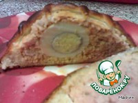 Выложила часть фарша. На нее положила сваренные яйца и второй частью фарша "укрыла". Сформировала колбаску.