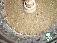 Добавляем муку (и соду). Перемешиваем. Добавляем овсяные хлопья, опять перемешиваем. Получается вот такое тесто. |