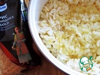 Начнем мы, конечно, с риса. Отмеряем 200 гр. Я использую рис "Индика Gold" от ТМ "Мистраль". Он отлично подходит для любых целей! Заливаем 400 мл. воды, солим по вкусу и варим обычную кашу. |