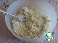 Приготовим начинку. Смешать творог с сахаром, манкой, мукой и сметаной. |