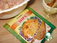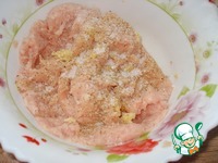 В фарш добавим половину зиры, 1 измельченный зубчик чеснока, соль, перец. |