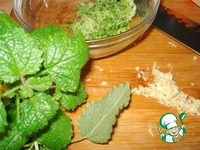 Для соуса на средней терке натрем огурец, один зубчик чеснока измельчим. Мелиссу ( можно мяту) мелко порежем. |