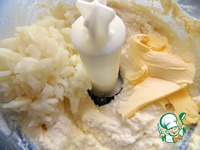 Творог перетереть в блендере, добавить яйцо, сахар, муку, соль, 1 ст. л. сметаны всё перетереть. |