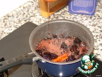 Варим соус. Если чернослив очень сухой, его предварительно надо замочить в воде. В кастрюльке варим вино, сахар, палочку корицы и чернослив, постоянно помешивая. |