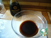 Для маринада смешать соевый соус "Киккоман", растительное масло и мед. |