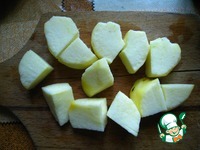 Нанизать сыр, лук и яблоки на шпажки. Получилось 5 шашлычков. Яблоки смазать маринадом. |
