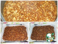 Варим эту смесь минут 15-20 на медленном огне. Затем выкладываем на противень, застеленный пергаментом. Немного остывшую массу нарезаем на прямоугольники. |