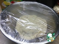 Выложить тесто на подпыленный мукой стол и месить еще около 5 минут. Затем положить тесто в миску, накрыть пленкой и оставить в теплом месте до подъема в 2 раза. |
