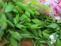 Щавель перебрать, промыть и мелко нарезать. Авторы предлагают варить его 5 минут. Так я сделала 1 раз. Сейчас просто обдаю его кипятком, выложив в сито. |