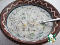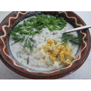 Описание: Несколько лет назад наткнулась на этот рецепт в литовском женском журнале. Всегда считала, что борщ - суп со свеклой. Как он может быть белым?! Этот борщ, действительно, без свеклы. Но щавель - первая весенняя зелень - вполне ее заменяет. Немного похоже на традиционный литовский холодный борщ. Да и на окрошку - тоже. Немного, правда.