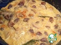 Влейте сливки и немного горячей воды. Накройте крышкой и тушите на маленьком огне. Подсолите. |