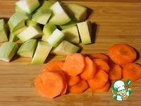 Кабачок нарезать крупными кусочками, морковь кружочками. |