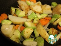 Обжарить овощи на сильном огне с добавлением 2 ст. л. растительного масла, до золотистого цвета. Посолить и поперчить. |