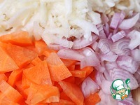 Режем морковь и лук, а сельдерей трем на крупной терке. |