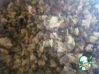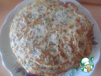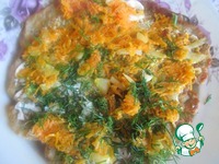 7. Каждый корж смазать майонезом и выложить начинку. |