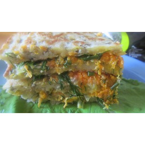 6. Для начинки: морковь натереть на терке, лук мелко нарезать. Обжарить на растительном масле, в конце добавить выдавленный чеснок и укроп. |