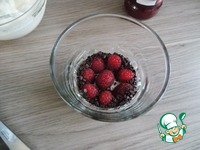 Берём любую ягоду (у меня малина) и выкладываем следующим слоем. |